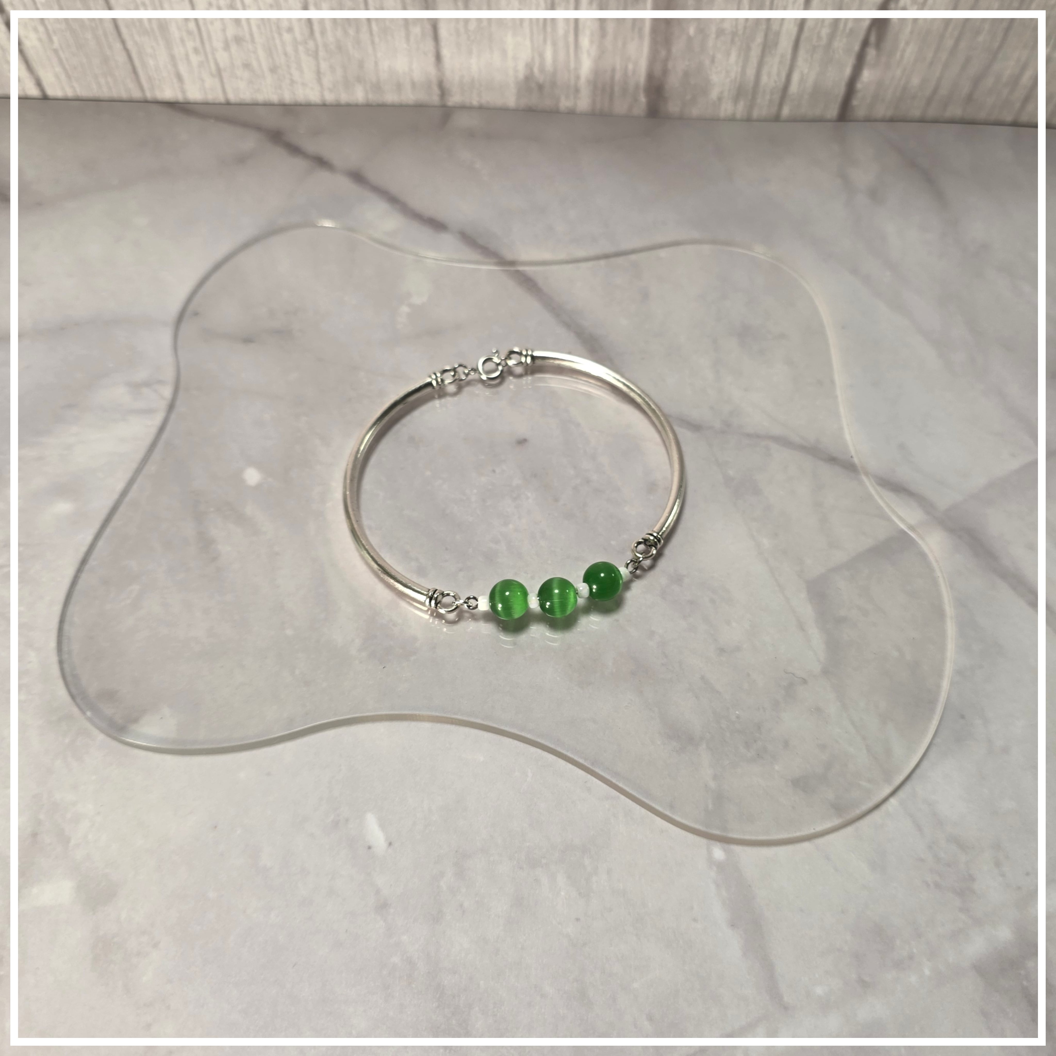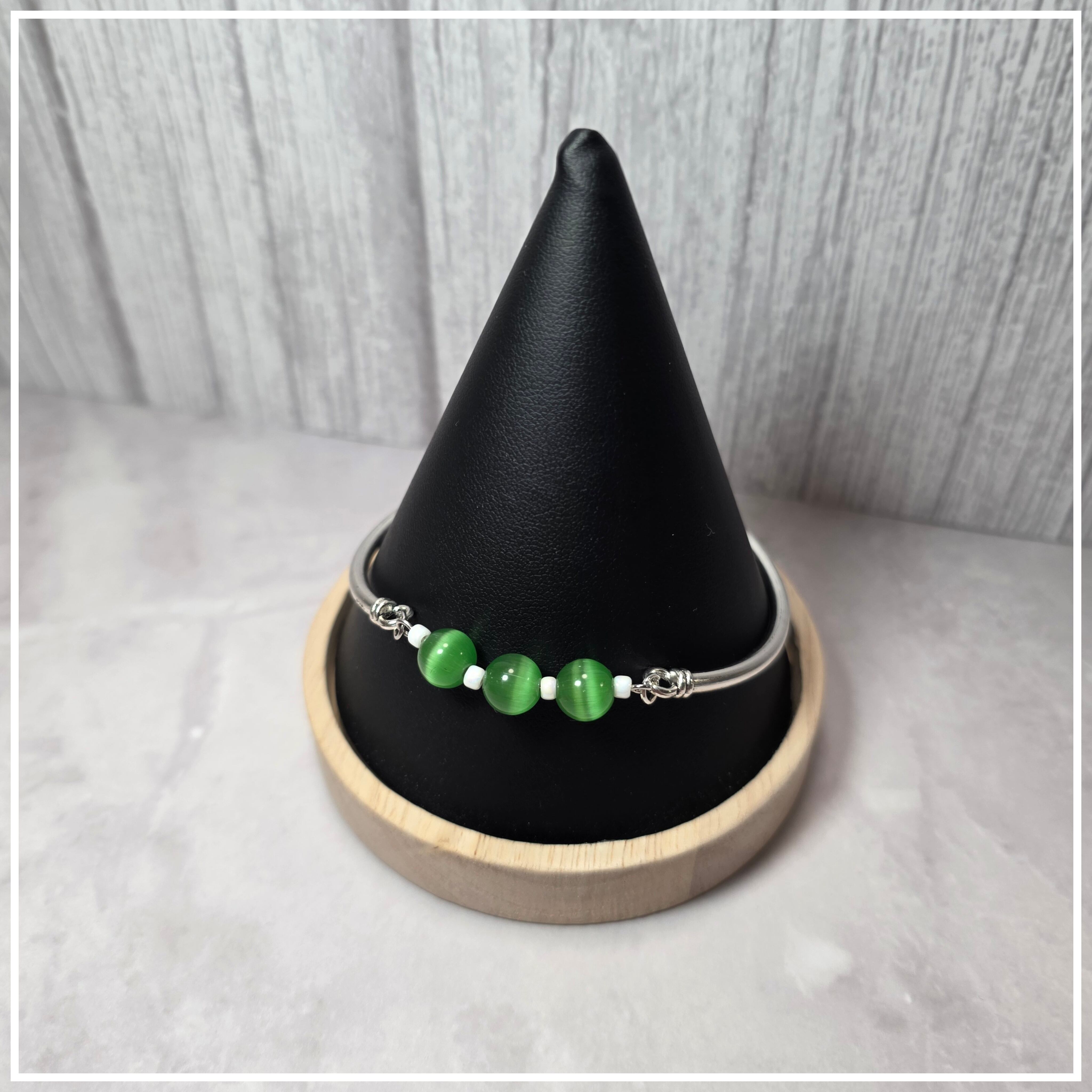 ブレスレット 天然石キャットアイスストーン(Green)