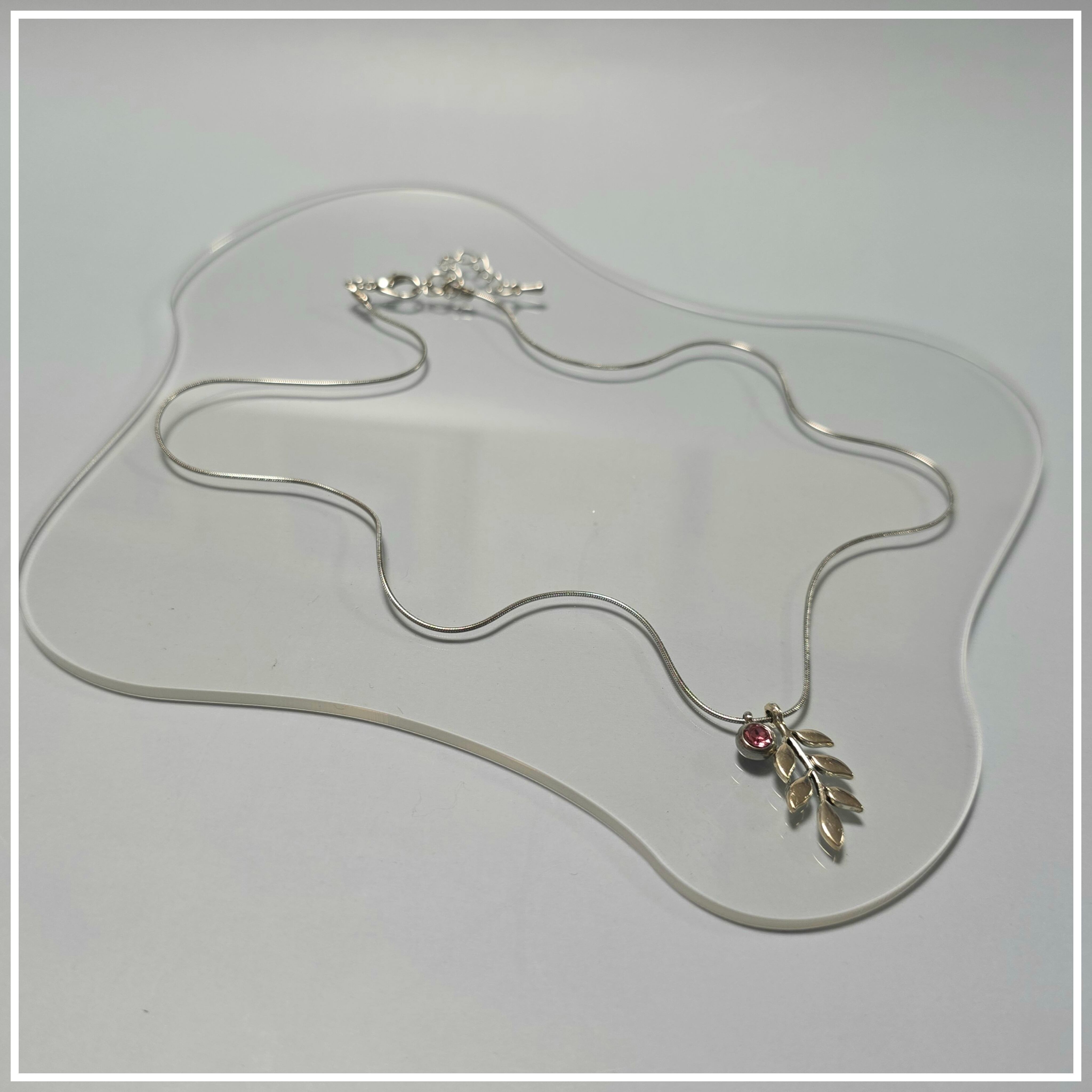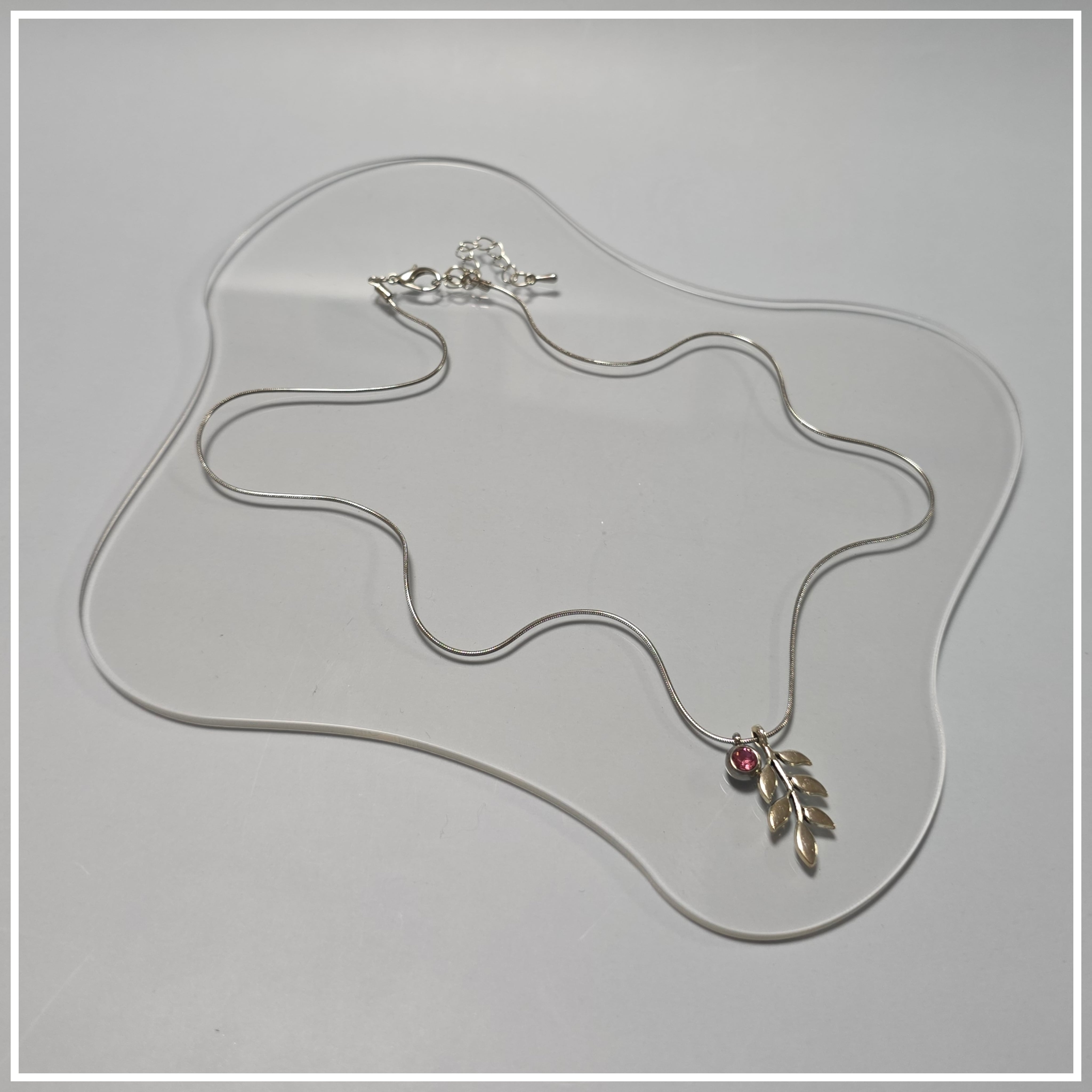 リーフデザインが魅力的なペンダントは、華やかなキラキラと輝きを放つ一品です。ピンクのラインストーンは、エレガントでありながらも日常使いにもぴったり!サイズ45〜50㎝の調節可能なチェーンにより、首元に美しいラインを描き、どのスタイルにもお似合いです。