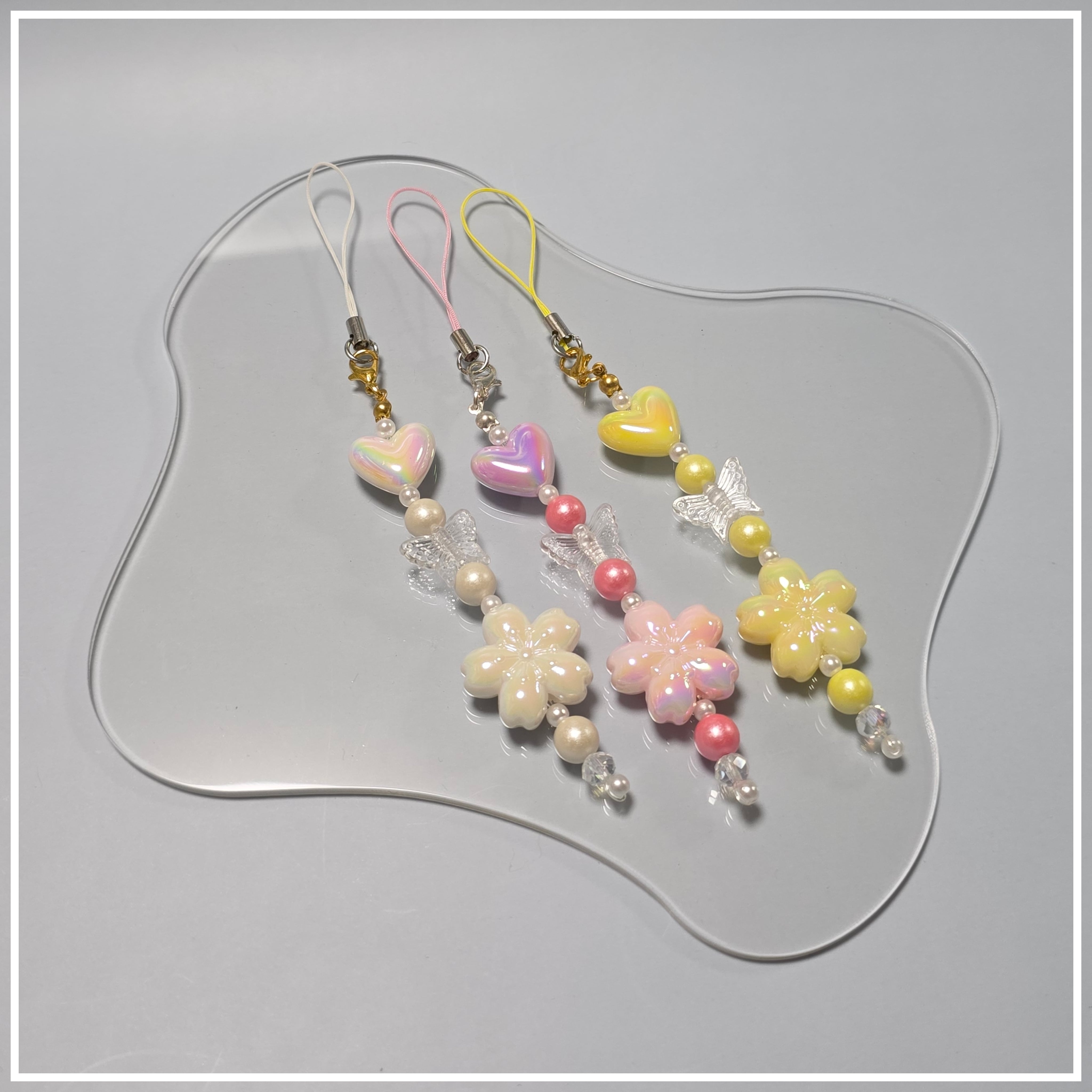 ・使用素材:ビーズはアクリルビーズ、ボールチップは亜鉛合金、その他のパーツにはABS樹脂を使用しています。