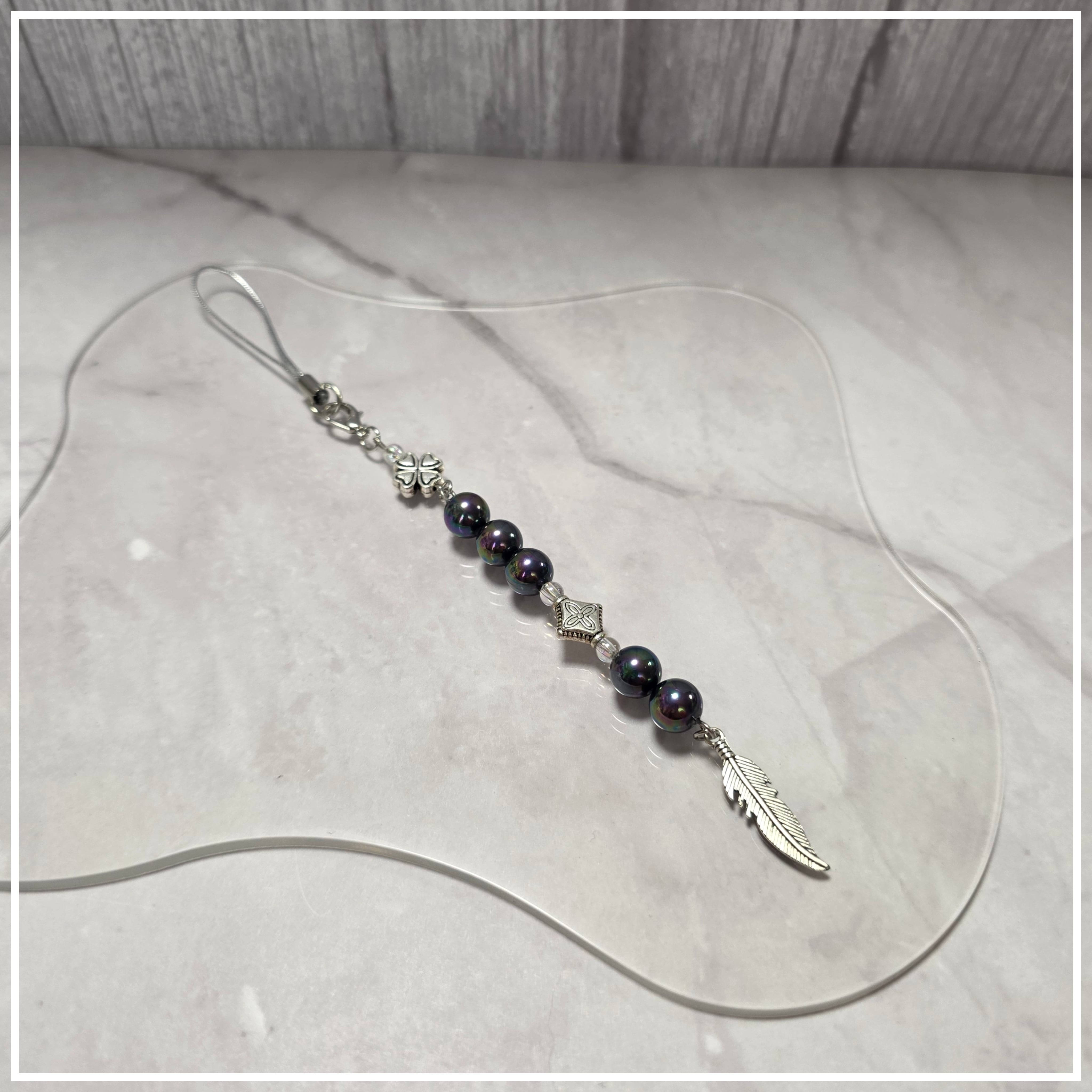 ストラップクローバー&羽根(ストレート)