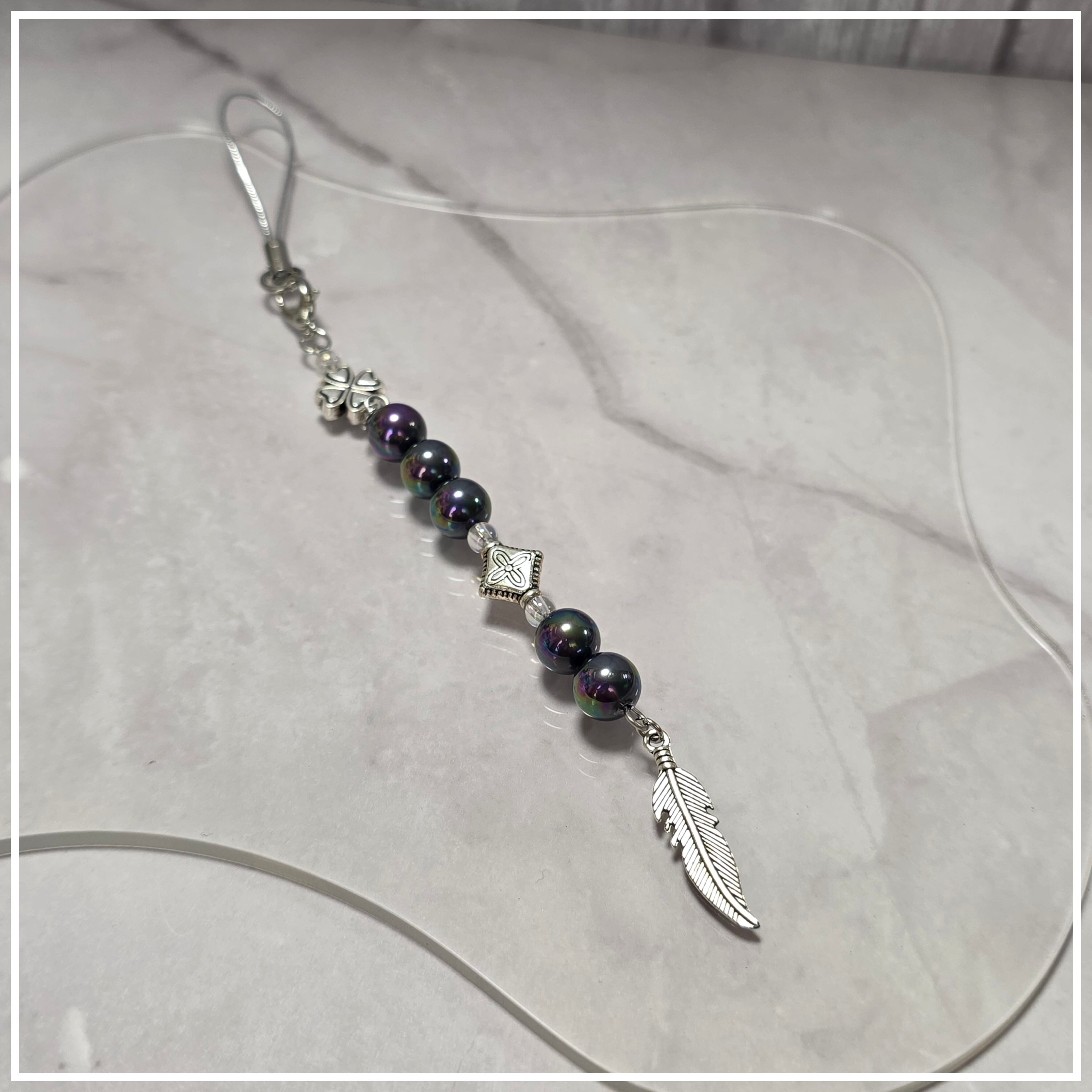 幸せを呼ぶ四つ葉クローバーと羽根のストラップです。全長17㎝のボールチップから下の部分が10.5㎝になるデザインは、カッコよさと可愛らしさを兼ね備えています。性別を問わずお楽しみいただけるこのストラップは、普段使いはもちろん、特別なシーンにもぴったりです!おしゃれなスタイルに華やかなアクセントを加え、心を弾ませるアイテムです。