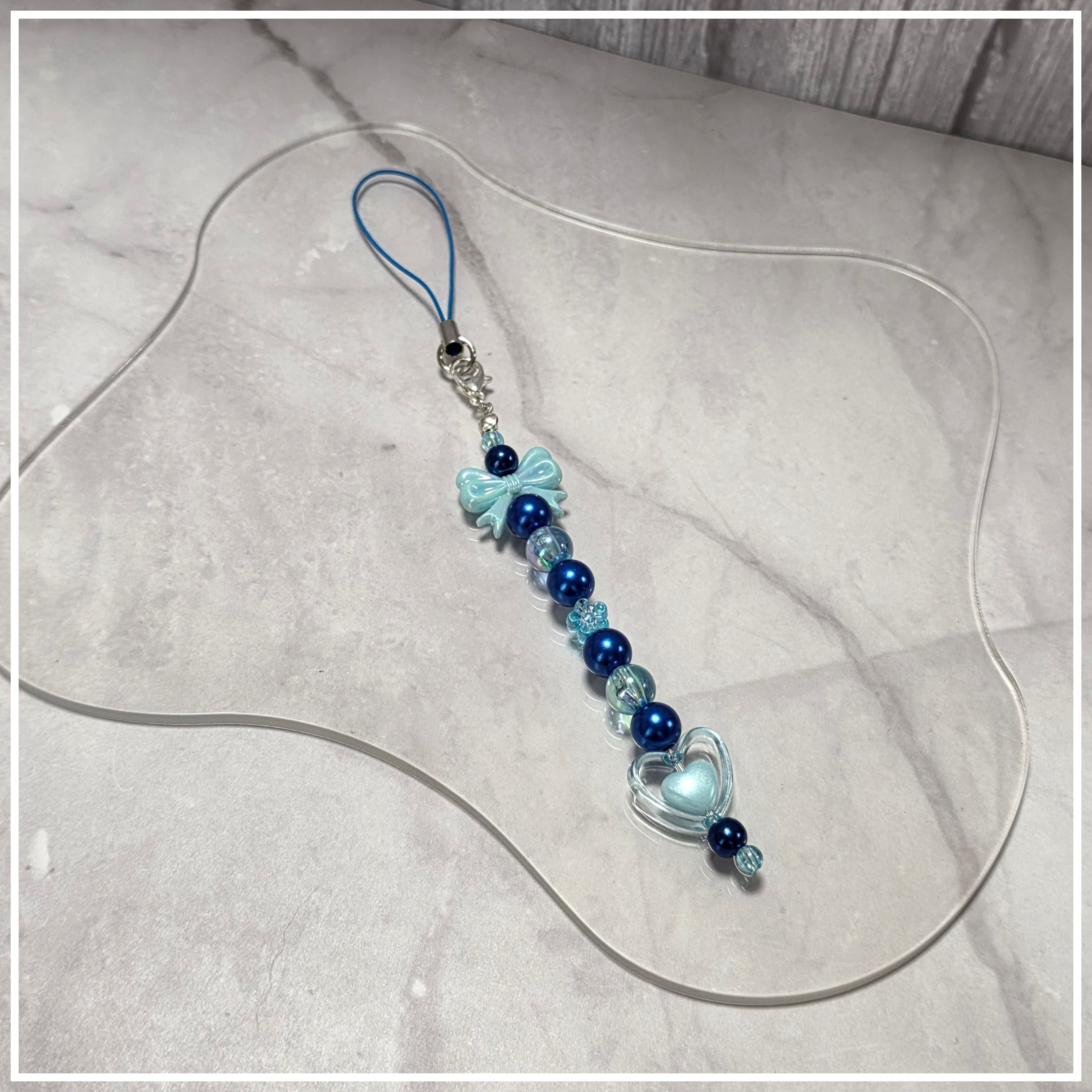 ストラップ Blue リボン&ハート♡(ストレート)